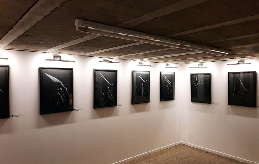 The work on black paper is the creation of light - creation through light of an invisible world of shadows impossible to describe. Hypertrophied in the drawings, we forget hands, to see only that precise moment that the pose seems to freeze, the drawing of a sensation. The strength of these hands, their marks, those of a lived experience and of a will, their movements are no more than arabesques out of a tenebrous universe. Finally, it is not only the drawing that is being created in one's mind but also a new story that only one owns.
